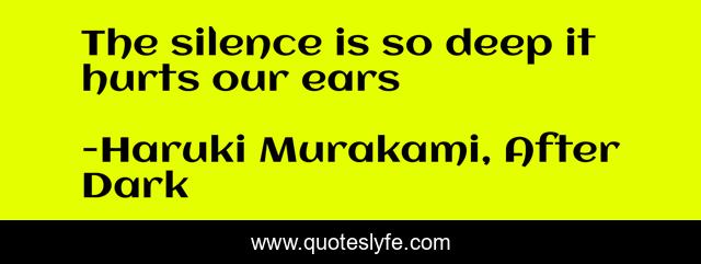 This page presents the quote "The silence is so deep it hurts our ears". Author of this quote is Haruki Murakami, After Dark. .
