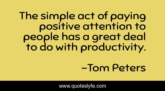 This page presents the quote "The simple act of paying positive attention to people has a great deal to do with productivity.". Author of this quote is Tom Peters. This quote is about productivity, positive-influence,.
