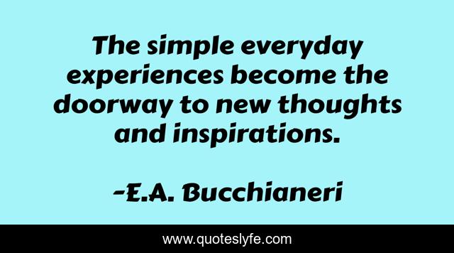 This page presents the quote "The simple everyday experiences become the doorway to new thoughts and inspirations.". Author of this quote is E.A. Bucchianeri. This quote is about original-thoughts, sources-of-inspiration, creativity, ideas, writing, simple-things, experiences, creative-people, arts-and-humanities,.
