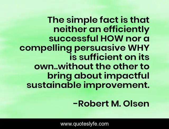 This page presents the quote "The simple fact is that neither an efficiently successful HOW nor a compelling persuasive WHY is sufficient on its own..without the other to bring about impactful sustainable improvement.". Author of this quote is Robert M. Olsen. .