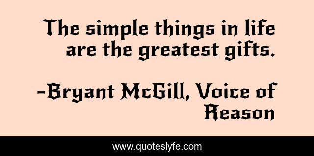 This page presents the quote "The simple things in life are the greatest gifts.". Author of this quote is Bryant McGill, Voice of Reason. This quote is about living, simple-living, god-s-grace,.
