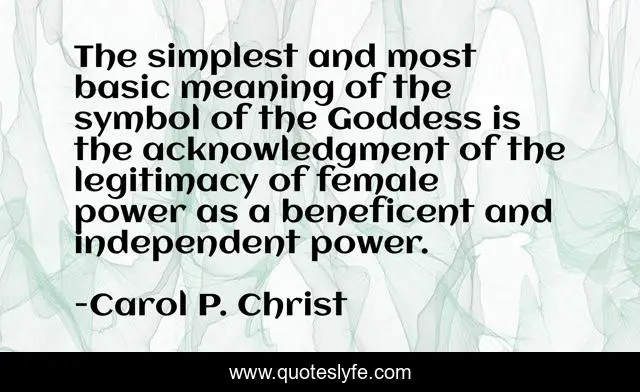 This page presents the quote "The simplest and most basic meaning of the symbol of the Goddess is the acknowledgment of the legitimacy of female power as a beneficent and independent power.". Author of this quote is Carol P. Christ. This quote is about independent, meaning,.