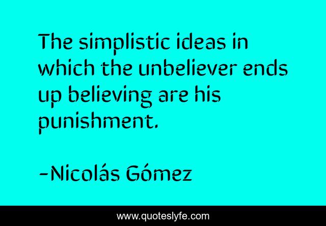 This page presents the quote "The simplistic ideas in which the unbeliever ends up believing are his punishment.". Author of this quote is Nicolás Gómez. .