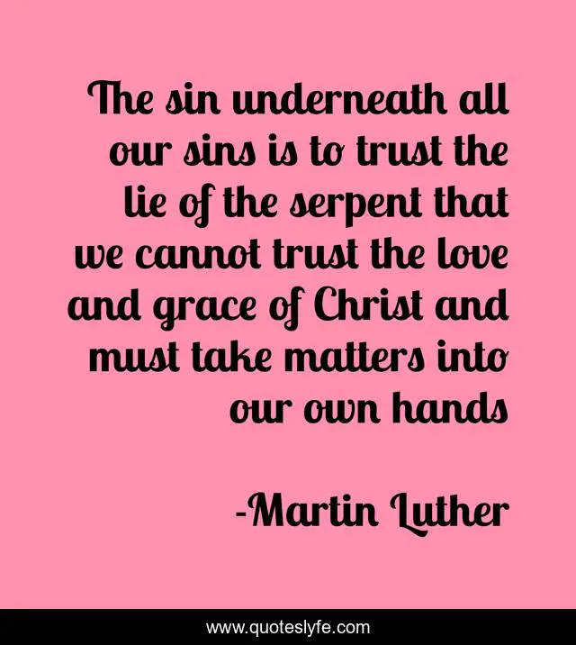 This page presents the quote "The sin underneath all our sins is to trust the lie of the serpent that we cannot trust the love and grace of Christ and must take matters into our own hands". Author of this quote is Martin Luther. This quote is about god-s-love, sin,.