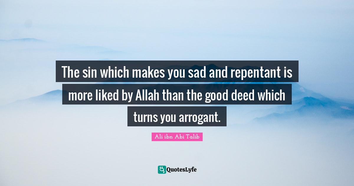 This page presents the quote "The sin which makes you sad and repentant is more liked by Allah than the good deed which turns you arrogant.". Author of this quote is Ali ibn Abi Talib. This quote is about sin, deeds, sad, arrogant, turns,.