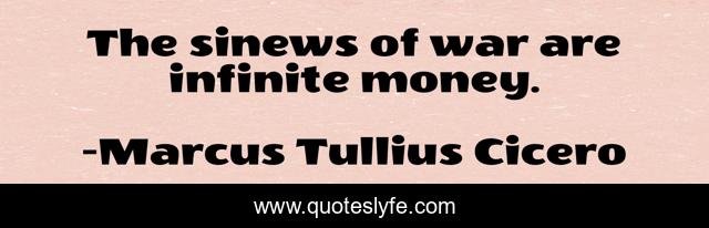 This page presents the quote "The sinews of war are infinite money.". Author of this quote is Marcus Tullius Cicero. This quote is about infinite, money, sinews,.