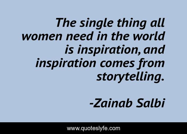 This page presents the quote "The single thing all women need in the world is inspiration, and inspiration comes from storytelling.". Author of this quote is Zainab Salbi. This quote is about enthusiasm, stories, inspirational, women,.