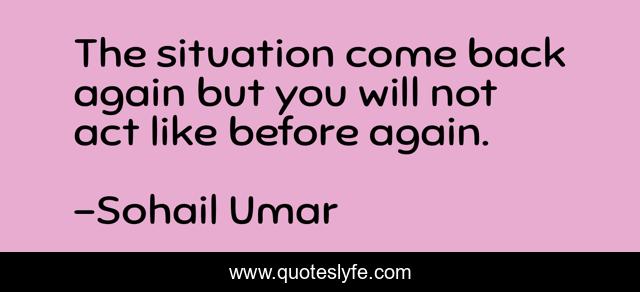 This page presents the quote "The situation come back again but you will not act like before again.". Author of this quote is Sohail Umar. This quote is about again, history, time,.