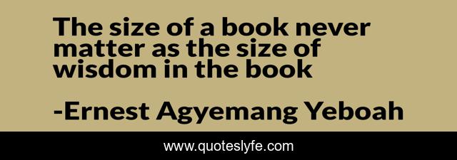 This page presents the quote "The size of a book never matter as the size of wisdom in the book". Author of this quote is Ernest Agyemang Yeboah. This quote is about choices, behaviour, attitude, books, looks, wisdom, buying-a-book,.