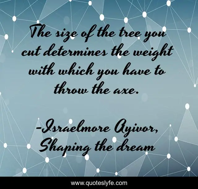 "Israelmore Ayivor, Shaping the dream Quotes." Quoteslyfe.com, 2025. Fri. 05 Dec. 2025. <https://www.quoteslyfe.com/quote/The-size-of-the-tree-you-cut-118856>.