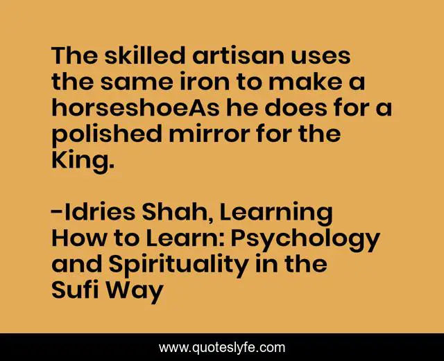 "Idries Shah, Learning How to Learn: Psychology and Spirituality in the Sufi Way Quotes." Quoteslyfe.com, 2025. Mon. 08 Dec. 2025. <https://www.quoteslyfe.com/quote/The-skilled-artisan-uses-the-same-iron-203367>.