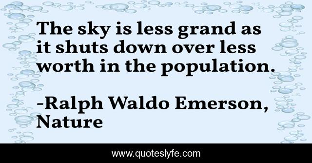 This page presents the quote "The sky is less grand as it shuts down over less worth in the population.". Author of this quote is Ralph Waldo Emerson, Nature. This quote is about man, sky, worth, nature,.