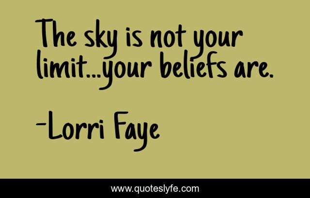 This page presents the quote "The sky is not your limit...your beliefs are.". Author of this quote is Lorri Faye. This quote is about confidence, positive, motivational, optimistic, inspirational, enthusiasm, inspiration,.