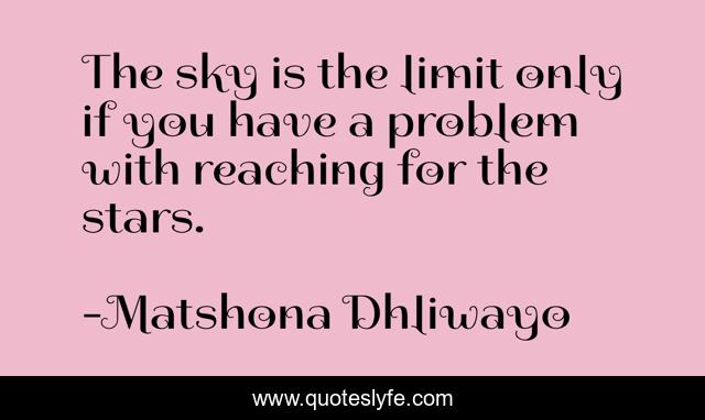 "Matshona Dhliwayo Quotes." Quoteslyfe.com, 2025. Fri. 05 Dec. 2025. <https://www.quoteslyfe.com/quote/The-sky-is-the-limit-only-if-15570>.