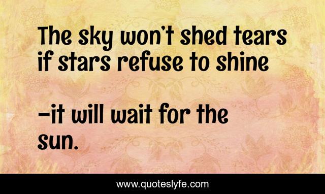 "it will wait for the sun. Quotes." Quoteslyfe.com, 2025. Fri. 05 Dec. 2025. <https://www.quoteslyfe.com/quote/The-sky-won-t-shed-tears-if-98029>.