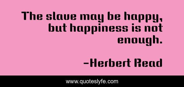 This page presents the quote "The slave may be happy, but happiness is not enough.". Author of this quote is Herbert Read. This quote is about be happy, slave, happy,.