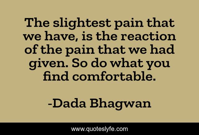 This page presents the quote "The slightest pain that we have, is the reaction of the pain that we had given. So do what you find comfortable.". Author of this quote is Dada Bhagwan. This quote is about reaction, spiritual, how-to-find-comfortable, actions,.