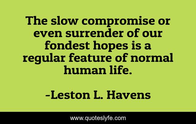 This page presents the quote "The slow compromise or even surrender of our fondest hopes is a regular feature of normal human life.". Author of this quote is Leston L. Havens. .