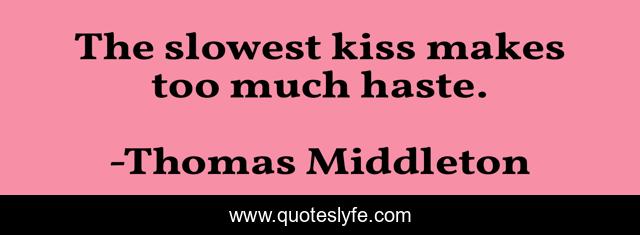 This page presents the quote "The slowest kiss makes too much haste.". Author of this quote is Thomas Middleton. This quote is about romance, love, kiss, affection,.