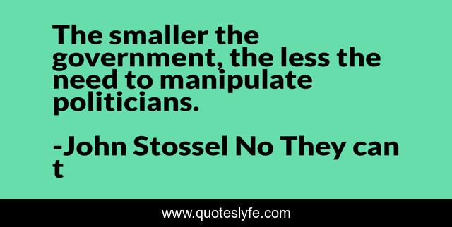 This page presents the quote "The smaller the government, the less the need to manipulate politicians.". Author of this quote is John Stossel No They can t. .
