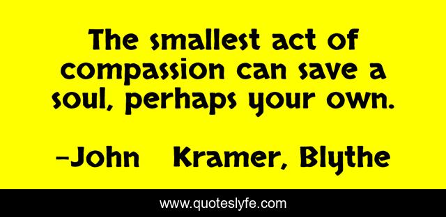 "John Kramer, Blythe Quotes." Quoteslyfe.com, 2025. Fri. 05 Dec. 2025. <https://www.quoteslyfe.com/quote/The-smallest-act-of-compassion-can-save-62969>.