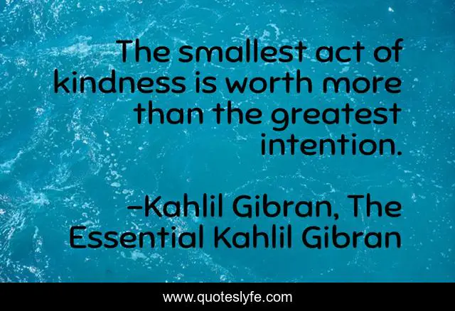 "Kahlil Gibran, The Essential Kahlil Gibran Quotes." Quoteslyfe.com, 2025. Fri. 05 Dec. 2025. <https://www.quoteslyfe.com/quote/The-smallest-act-of-kindness-is-worth-136171>.