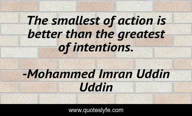 This page presents the quote "The smallest of action is better than the greatest of intentions.". Author of this quote is Mohammed Imran Uddin Uddin. This quote is about action, intention, small, productivity,.