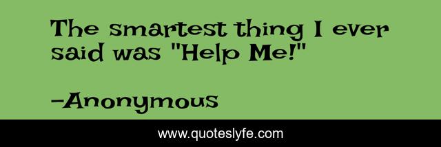 This page presents the quote "The smartest thing I ever said was "Help Me!"". Author of this quote is Anonymous. This quote is about helping, people,.