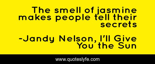 This page presents the quote "The smell of jasmine makes people tell their secrets". Author of this quote is Jandy Nelson, I'll Give You the Sun. This quote is about secret, jasmine,.