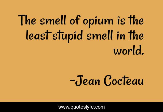 This page presents the quote "The smell of opium is the least stupid smell in the world.". Author of this quote is Jean Cocteau. This quote is about drugs, scent, opium,.