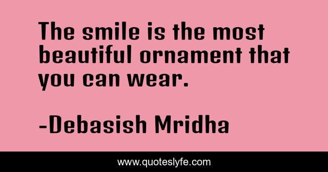 "Debasish Mridha Quotes." Quoteslyfe.com, 2025. Sat. 06 Dec. 2025. <https://www.quoteslyfe.com/quote/The-smile-is-the-most-beautiful-ornament-74866>.