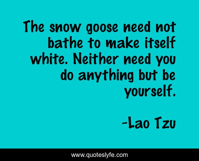 This page presents the quote "The snow goose need not bathe to make itself white. Neither need you do anything but be yourself.". Author of this quote is Lao Tzu. This quote is about be-yourself, white,.