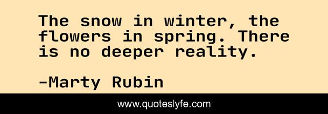 This page presents the quote "The snow in winter, the flowers in spring. There is no deeper reality.". Author of this quote is Marty Rubin. This quote is about flowers, snow, nature, reality,.