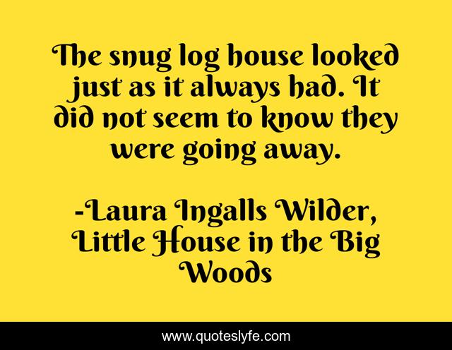 "Laura Ingalls Wilder, Little House in the Big Woods Quotes." Quoteslyfe.com, 2025. Fri. 05 Dec. 2025. <https://www.quoteslyfe.com/quote/The-snug-log-house-looked-just-as-70681>.