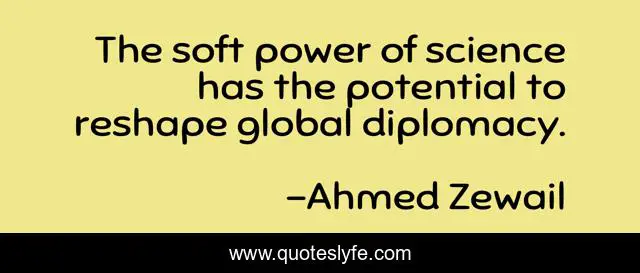 This page presents the quote "The soft power of science has the potential to reshape global diplomacy.". Author of this quote is Ahmed Zewail. This quote is about potential, power, diplomacy,.