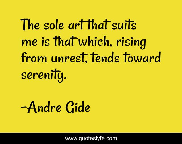 This page presents the quote "The sole art that suits me is that which, rising from unrest, tends toward serenity.". Author of this quote is Andre Gide. This quote is about me, serenity, suits,.
