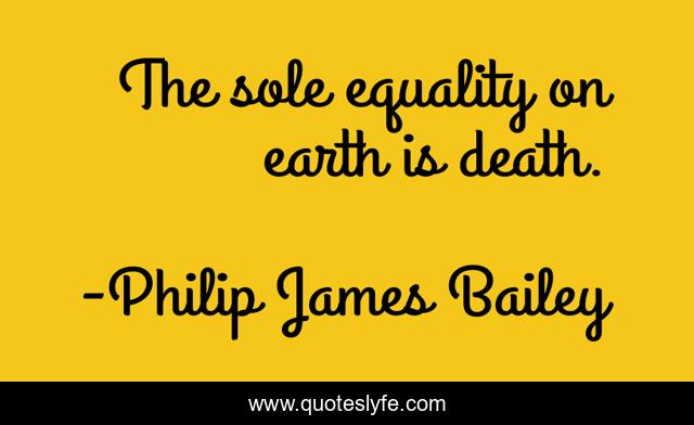 This page presents the quote "The sole equality on earth is death.". Author of this quote is Philip James Bailey. This quote is about earth, death, sole,.