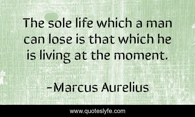 This page presents the quote "The sole life which a man can lose is that which he is living at the moment.". Author of this quote is Marcus Aurelius. .