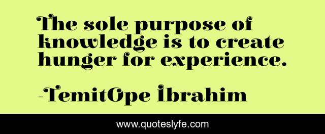 This page presents the quote "The sole purpose of knowledge is to create hunger for experience.". Author of this quote is TemitOpe Ibrahim. This quote is about knowledge, hunger, create, sole, follow-through, experience, wisdom, growth, purpose,.