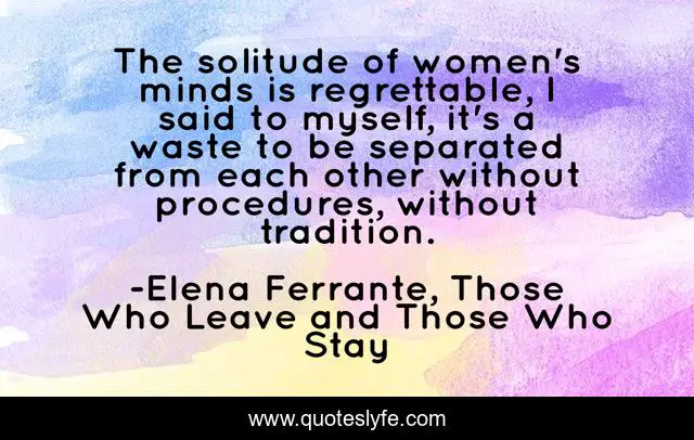 "Elena Ferrante, Those Who Leave and Those Who Stay Quotes." Quoteslyfe.com, 2025. Tue. 09 Dec. 2025. <https://www.quoteslyfe.com/quote/The-solitude-of-women-s-minds-is-50694>.