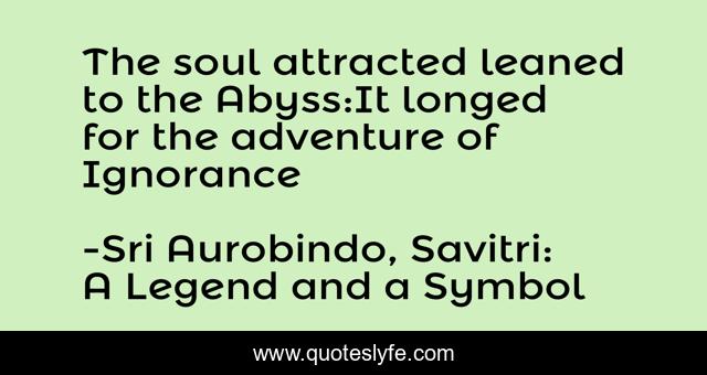 This page presents the quote "The soul attracted leaned to the Abyss:It longed for the adventure of Ignorance". Author of this quote is Sri Aurobindo, Savitri: A Legend and a Symbol. This quote is about reincarnation, abyss, ignorance, adventure, soul,.