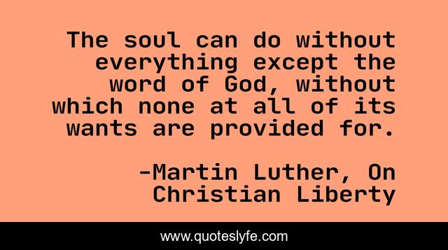 "Martin Luther, On Christian Liberty Quotes." Quoteslyfe.com, 2025. Fri. 05 Dec. 2025. <https://www.quoteslyfe.com/quote/The-soul-can-do-without-everything-except-169265>.