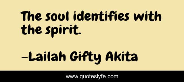 This page presents the quote "The soul identifies with the spirit.". Author of this quote is Lailah Gifty Akita. This quote is about spirituality, philosophy, soul, spirit,.