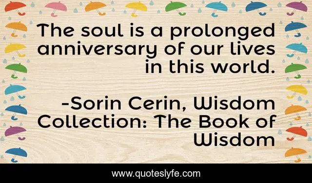 "Sorin Cerin, Wisdom Collection: The Book of Wisdom Quotes." Quoteslyfe.com, 2025. Mon. 08 Dec. 2025. <https://www.quoteslyfe.com/quote/The-soul-is-a-prolonged-anniversary-of-62839>.