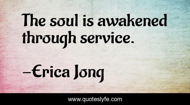 This page presents the quote "The soul is awakened through service.". Author of this quote is Erica Jong. .