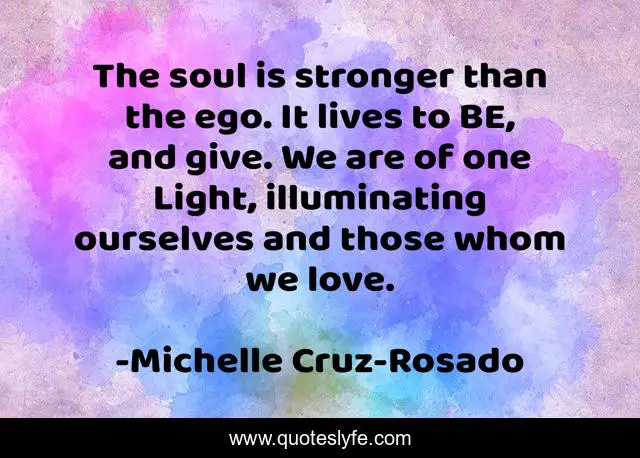 "Michelle Cruz-Rosado Quotes." Quoteslyfe.com, 2025. Mon. 08 Dec. 2025. <https://www.quoteslyfe.com/quote/The-soul-is-stronger-than-the-ego-237578>.