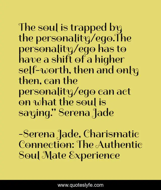 This page presents the quote "The soul is trapped by the personality/ego.The personality/ego has to have a shift of a higher self-worth, then and only then, can the personality/ego can act on what the soul is saying." Serena Jade". Author of this quote is Serena Jade, Charismatic Connection: The Authentic Soul Mate Experience. This quote is about ego, serena-jade, charismatic-connection, soul-mates, the-soul,.