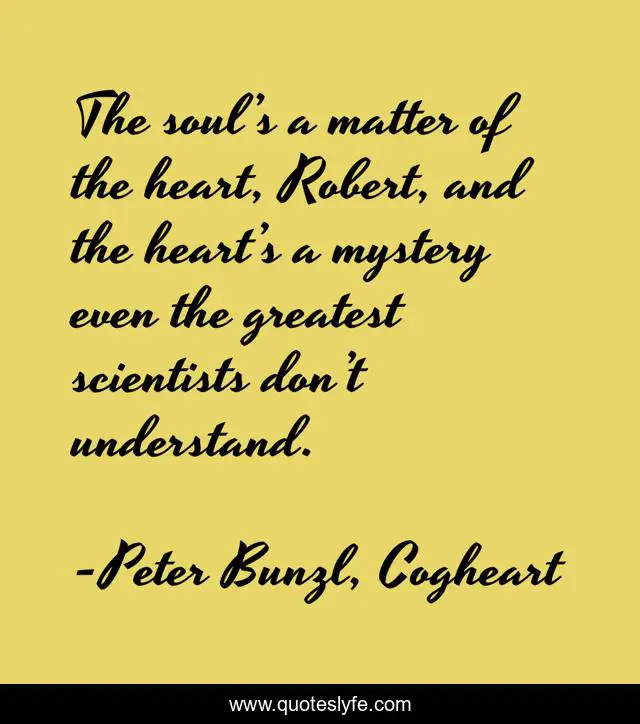 This page presents the quote "The soul’s a matter of the heart, Robert, and the heart’s a mystery even the greatest scientists don’t understand.". Author of this quote is Peter Bunzl, Cogheart. .