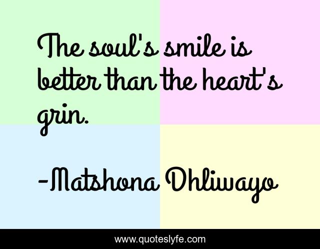 "Matshona Dhliwayo Quotes." Quoteslyfe.com, 2025. Sun. 07 Dec. 2025. <https://www.quoteslyfe.com/quote/The-soul-s-smile-is-better-than-121121>.