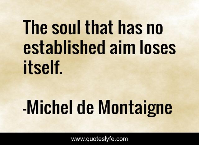 This page presents the quote "The soul that has no established aim loses itself.". Author of this quote is Michel de Montaigne. .